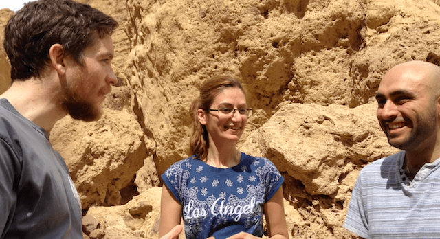 Almost a decade later, Tala picked me up from Rawan Cake on شارع الجامعة / sharya al-jaamia (University Street) (no relation to Rawan), and we drove to Jabal Amman to meet up with her friend Shehab, with whom she had studied in New York City after finishing undergrad. At some point in the evening, someone suggested going hiking the next day, and plans were forged for a trip out of the city and into the desert. I didn’t know what to expect – but it sounded fun! Hopefully this video gives you an idea of the otherworldly landscape to be found out near the Dead Sea. We had a great hike, even if it was scorching hot out. Also, I had left my phone and my camera in the car, but luckily another hiker in our group agreed to film the video! I remember it feeling awkward to try and convince him to film the video, but that’s the life of a Lernen to Talk Show host. I’m so grateful to Tala and to Shehab for joining me for this episode. It brings back great memories.
