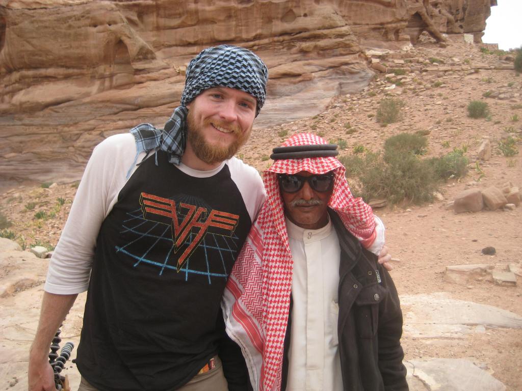 1:18 – Despite assistance from several native Arabic speakers, I’m not 100% certain what Saud says here. My friend Ahmed had the best theory, which is what I went with in the subtitles. As you can tell in a couple parts of the conversation, Saud uses some English words (a few seconds later, he says “my grandfather from Petra”). I think he’s used to speaking English to tourists there. And it sounds like Saud begins to say the English word for “bedouin”, and so that’s how I translated it.