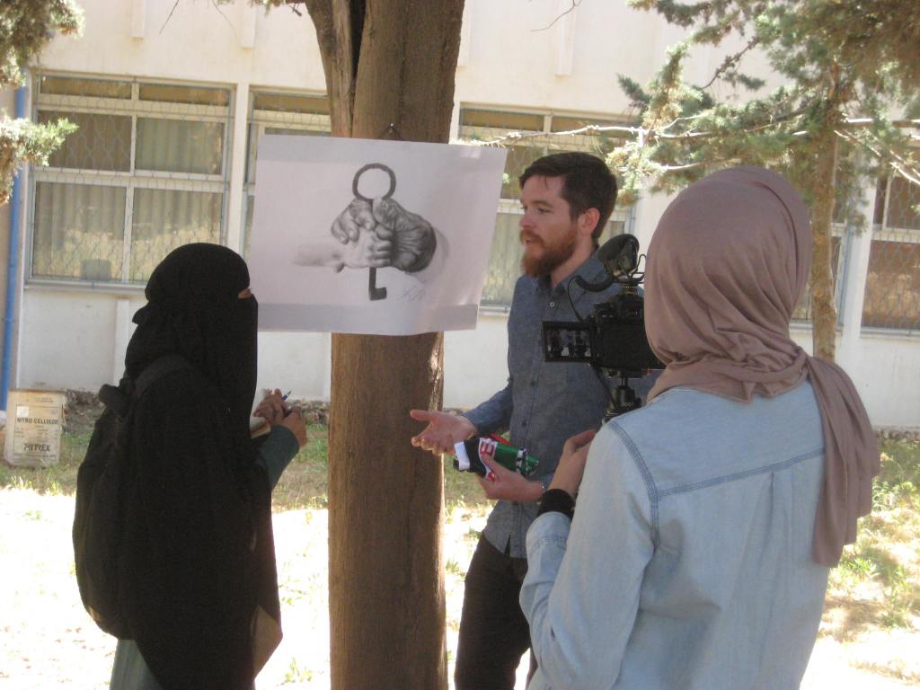 The day after visiting Petra, John and I were by two English students of mine to their university for the celebration of يوم القدس / yaum al Quds (“Jerusalem Day”). Reem, who you met in Episode 20, and Nour, my guest in today’s episode, were both studying at UNRWA in Amman, where much of the student body is comprised of Palestinian people like them. Nour was present at Ali Baba the first day I offered an English Conversation Club, and she came back every week the whole time I was in Jordan, bringing Reem along starting the second week. It was wonderful getting to know them both, and even though Nour calls me أستاذ / istadh (“Professor”) in this video, I feel that by the time my 16 weeks in Jordan were up, we had become good friends.
